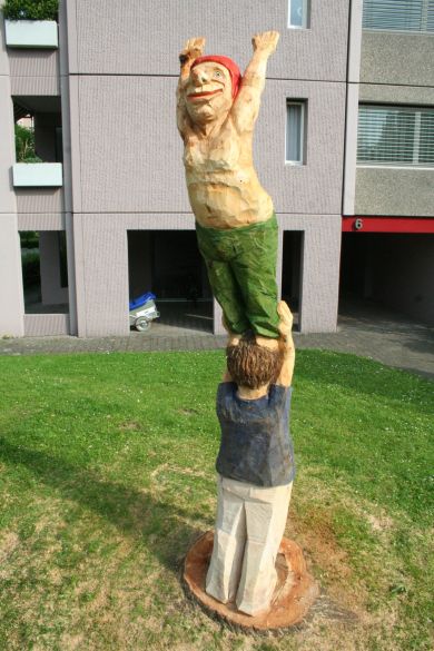 Ich bin Daniel Züsli und arbeite als Holzbildhauer. Mich interessiert, was entsteht, wenn man Materialien ernst nimmt und beginnt, sie zu verändern. Durch Schneiden, Wegnehmen und Eingreifen entstehen Formen, Figuren und Situationen, die unsere Gegenwart berühren.