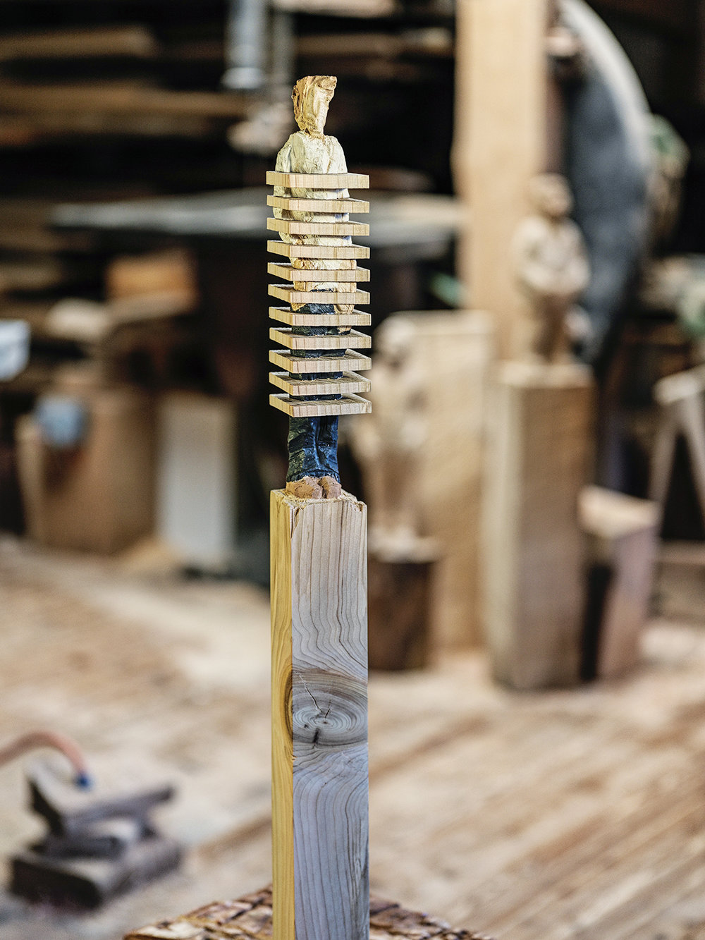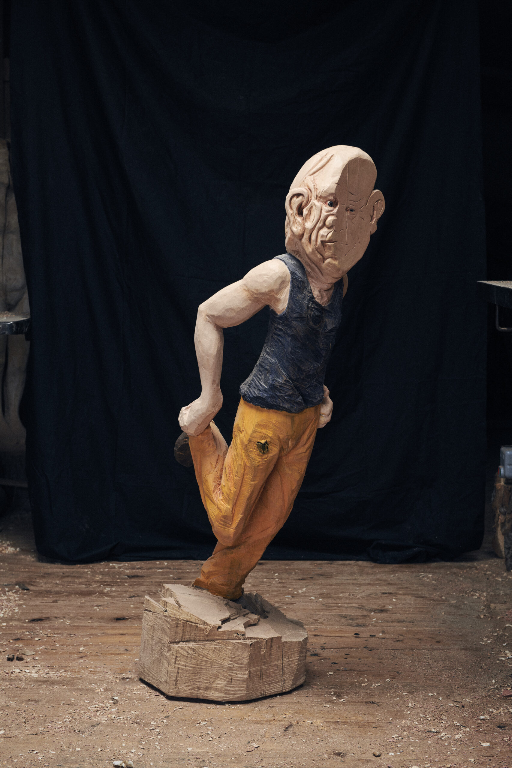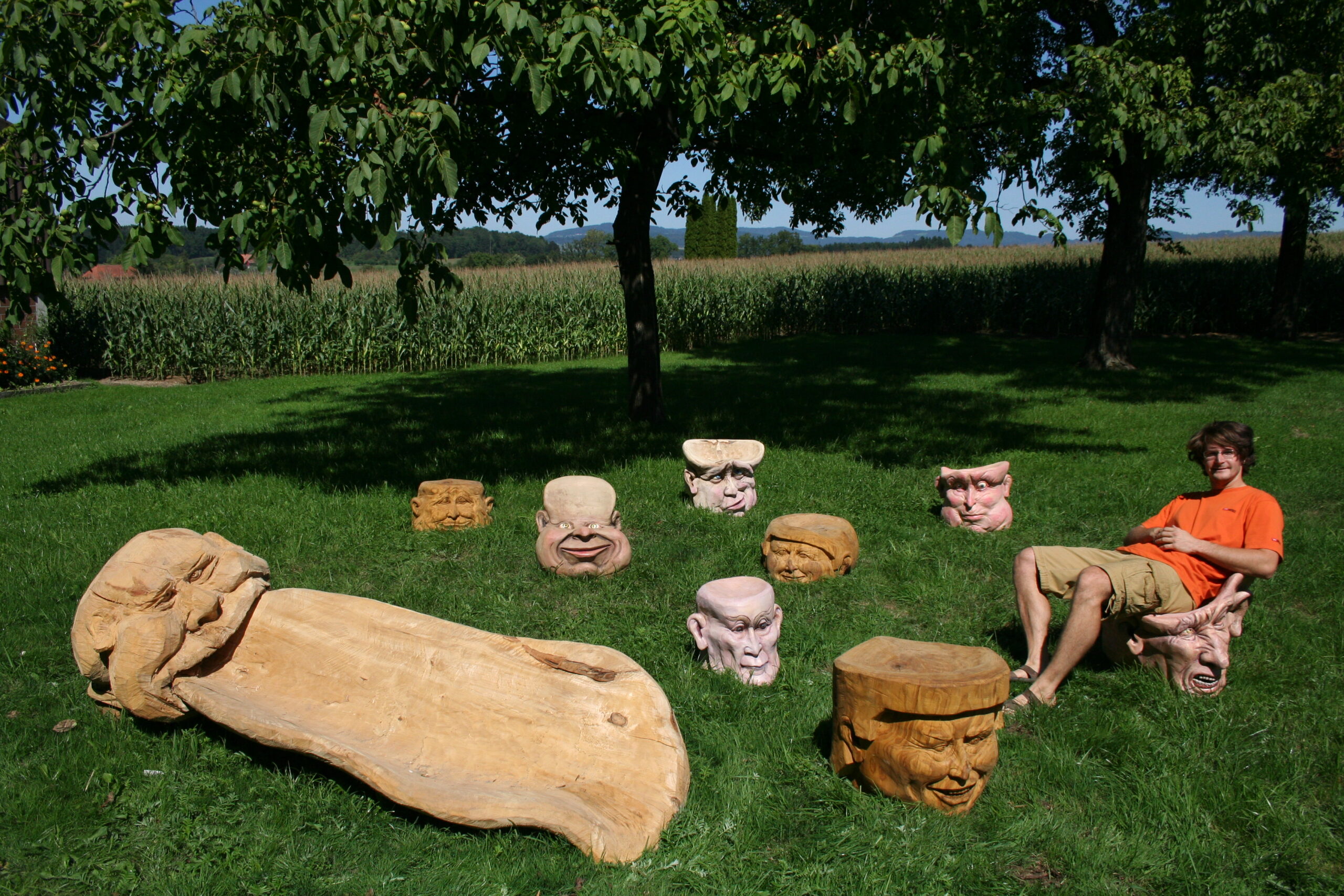 In meinen freien Holzbildhauerarbeiten arbeite ich ohne Auftrag und ohne Vorgabe, idealerweise sogar ohne Sinn. Sie entstehen aus dem Anspruch heraus, Bildhauer zu sein: Holz zu bearbeiten, Formen zu behaupten und dem Material etwas abzugewinnen.